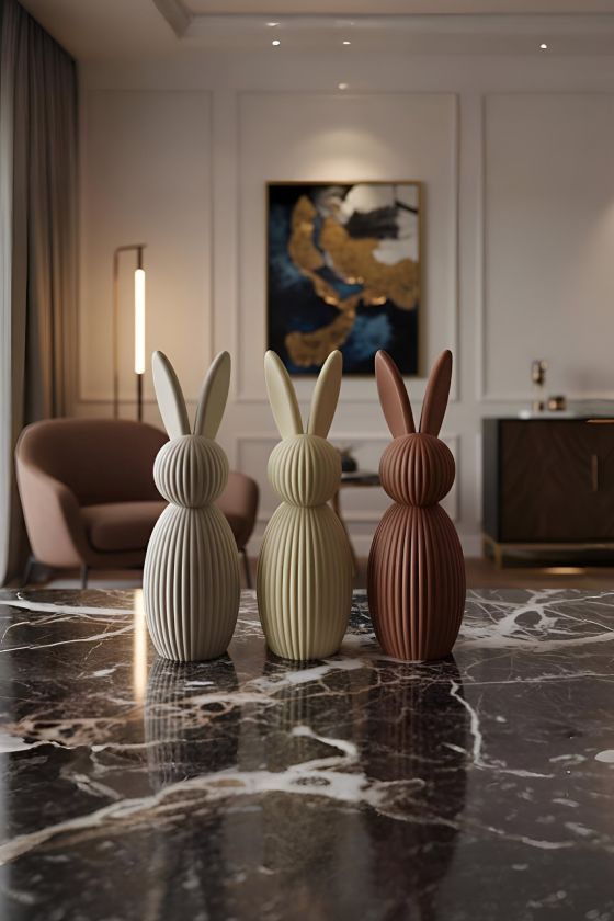 Modern dekorasyonun en zarif simgelerinden biri olan tavşan figürümüz, bulunduğu her ortama sofistike bir hava katar.